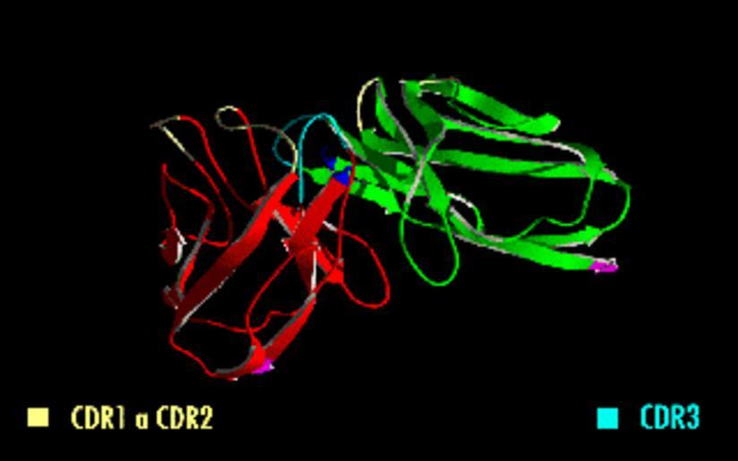 | Keywords: ScFv-rotation.gif  Animation showing a 3D model of single chain antibody scFV The complementatity determining regions CDRs are highlighted Author Tomas Moravec 2005-10-28 own assumed Xmort~commonswiki animated ribbon diagrams Antibodies Animated GIF Animations on black background |