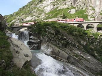 Keywords: schöllenen gorge gotthard switzerland alpine pass train railway