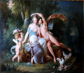 | Keywords: Schall, Frederic - Zephyr Crowning Flora -.jpg Artwork creator Jean-Frédéric Schall oil canvas cm 96 5 137 5 Private collection New York City accession number object history credit line http //www guirochat addr com/ http //www guirochat addr com/images/schalmajor jpg PD-old-100 Jean-Frédéric Schall Zephyr Crowning Flora 19th-century paintings in unidentified private collections Paintings of Flora and Zephyrus Flower crowns in art Mythological figures in nature Paintings of people in nature 19th-century paintings in private collections oil paintings of people Paintings of putti in the United States Doves associated with goddesses of love and fertility Rococo paintings of people 19th-century mythological paintings Uploads by Mattes from external sources Mythological paintings in the United States Headcarrying in art Flower baskets in art |