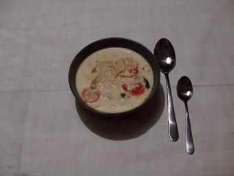Keywords: Scharfe Kokos-Hühnersuppe.jpg Scharfe Kokos-Hühnersuppe coconut-chicken soup Own 2007-12-22 Thorsten Alge Ogmios Soups of Germany Coconut milk soups Photographs by User Ogmios Chicken soup
