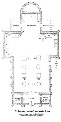 | Keywords: Schemat wnętrza kościoła sw Mateusza w Pabianicach.JPG en Picture schedule is stated in the church porch in the display case information My own photo Scheme made by the architect Leszek Stano and given to the parish of St Matthew in 1988 as part of the information about the history of the parish Schematic probably the first time published on the web pl Zdjęcie schematu zamieszczonego w kruchcie kościelnej w gablocie informacyjnej Fotografia autorstwa własnego Schemat wykonany przez arch Leszka Stano i podarowany parafii św Mateusza w 1988 roku jako cześć informacji o historii parafii Schemat prawdopodobnie po raz pierwszy publikowany w sieci Fotografia tablicy informacyjnej z kruchty kościoła św Mateusza autor schematu arch Leszek Stano prawdopodobnie 1988 rok PD-Art Saints Matthew and Lawrence church in Pabianice |
