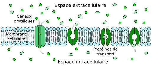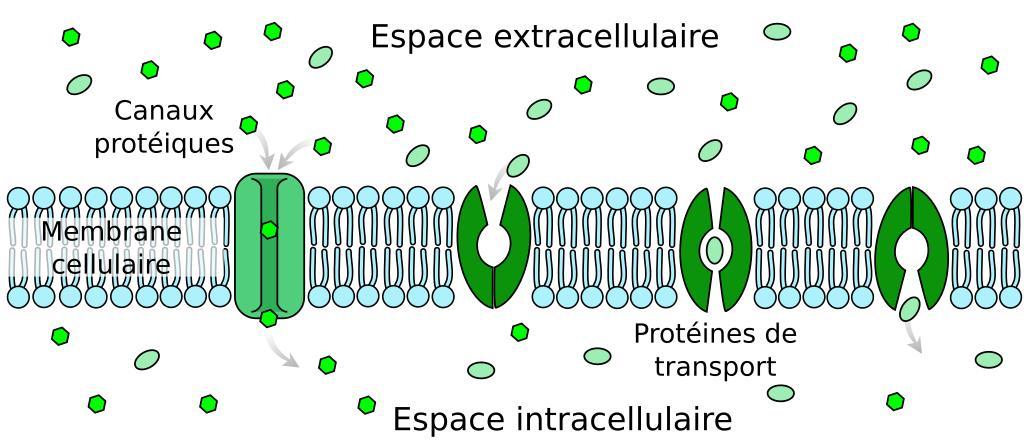 | Keywords: Scheme facilitated diffusion in cell membrane-fr.svg Le transport facilité implique l'utilisation de protéines pour faciliter le mouvement de molécules à travers la membrane Dans certains cas les molécules passe à travers un canal protéique Dans d'autres cas la protéine de transport change de conformation permettant le passage de la molécule Translation of Image Scheme facilitated diffusion in cell membrane-en svg 2007-02-04 English original ; 2010-09-15 French translation LadyofHats Mariana Ruiz English original ; Vaderf French translation LadyofHats Other versions/Scheme facilitated diffusion in cell membrane translation possible Ultrastructure diagrams SVG diagrams in French Membrane transport |