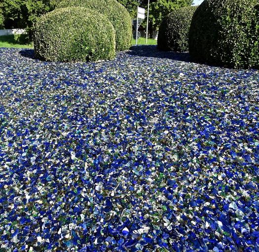 Keywords: scherbenmeer glass broken glass garden green blue white color shiny glassy decorative art