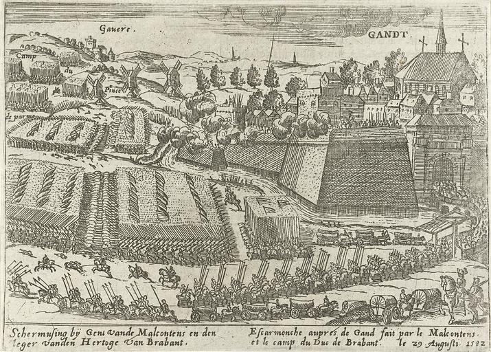 | Keywords: Schermutseling bij Gent, 1582.JPG en Struggle between armies of the duke of Anjou and the Malcontenten 27 or 29 august 1582 nl Schermutselingen tussen de legers van de hertog van Anjou en de Malcontenten bij Gent en Grave 27 of 29 augustus 1582 Rijksmuseum Amsterdam author 1578 1580 PD-art-100 1582 Prints in the Rijksmuseum Amsterdam |