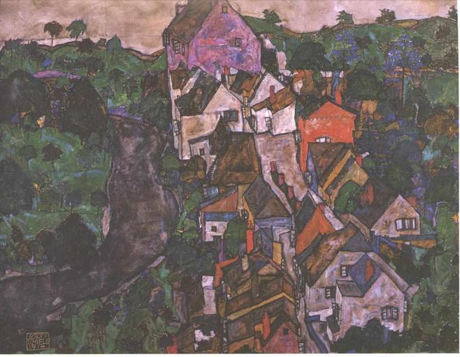 | Keywords: Schiele - Krumauer Landschaft - 1916.jpg Artwork Creator Egon Schiele 1916 oil canvas cm 110 5 141 accession number http //derstandard at/1163283 Der Standard 2002 12 17 object history by 1938 Daisy Hellmann provenanceEvent 1938 theft Nazis Wolfgang Gurlitt Berlin Dorotheum Neue Galerie Linz provenanceEvent 2003 restitution langswitch Erben von Daisy Hellmann heirs of Daisy Hellmann credit line in Monogrammkartusche repro from art book PD-old-auto-1923 1918 DEFAULTSORT Schiele; Krumau 1916 Landscapes by Egon Schiele 1916 paintings |