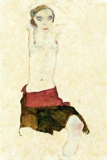 View Original:schiele_semi_nude_with_colored_skirt_raised_arms_1911.jpg (638x946)