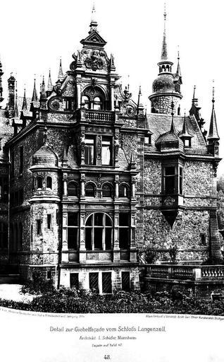 | Keywords: Schloß Langenzell in Neckargemünd, Architekt L. Schäfer, Mannheim, älterer Teil v. Mythus & Bluntschli , Frankfurt a. M., Detail, Tafel 48, Kick Jahrgang I.JPG en Schloß Langenzell Wilhelm Kick Hrsg Moderne Neubauten 1 Jahrgang Stuttgarter Architektur-Verlag Kick Stuttgart 1895 Kicks Zeitschrift erschien in vier Ausgaben 1895 I 1898 II 1901 III und 1902 IV - siehe Katalog der Unibibliothek Saarbrücken Author 1895 Jahrgang I public domain PD-old Schloss Langenzell | ||||
