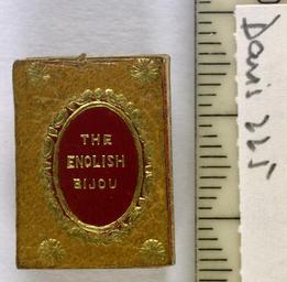| Keywords: Schloss's English Bijou Almanac for 1840 - Upper cover (Davis225).jpg Style Floral; Caption Upper cover; Colour Citron; Edge Unspecified exhibition history Decorative Technique Onlaid Tooled in gold; Cover Material Goatskin includes morocco turkey etc Pink endleaves With a slip case object history Text 1839; London; Unspecified object type Cc-zero place of creation Binding England place of discovery Unspecified British Library image http //www bl uk/catalogues/bookbindings/LargeImage aspx RecordId 020-000014405 ImageId ImageId 53735 Copyright BL Schloss's English Bijou Almanac for 1840 Uploaded with GWToolset Schloss's English Bijou Almanac for 1840 - Upper cover Davis225 http //www webarchive org uk/bldatasets/bindings/Davis 20225 jpg 19th-century bookbinding Bookbinding British Library Bookbindings |