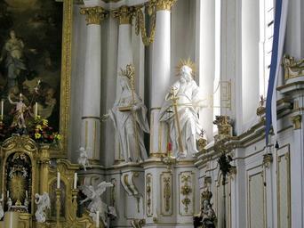 | Keywords: Scholastika Paulus.jpeg Klosterkirche Elchingen Heilige Scholastika und der Heilige Paulus Monastery church of Elchingen St Scholastika and St Petrus Photo taken by Effi Schweizer Date 2006-04-18 2006-04-18 own assumed Lily Klosterkirche Elchingen Statues of Saint Paul in Germany Statues of Saint Scholastica in Germany |