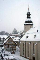 | Keywords: Schönheide im Erzgebirge – Kulturdenkmale – Bauernhaus.jpg de Das Fachwerkhaus Hauptstraße 49 neben der Martin-Luther-Kirche - fotografiert von der obersten Etage des Rathauses aus - hat eine lange Geschichte die im Bürsten- und Heimat-Museum das heute dieses Gebäude nutzt dokumentiert ist Das Fachwerkhaus aus dem Jahr 1657 wurde als Schule errichtet und 1680 als Pfarrhaus umgebaut Nach dem Umzug des Pfarramts in die Obere Straße wurde es als Wohnhaus genutzt Jahrzehnte war sein Fachwerk hinter Verbretterung “ wie jetzt noch auf der Wetterseite - und Putz verschwunden Mit der Umnutzung als Museum wurde sein schönes Fachwerk wieder sichtbar gemacht Schönheides Ortsbild wird vor der Verstädterung in der zweiten Hälfte des 19 Jahrhunderts von Bauten dieses Typs geprägt gewesen sein Auch im Inneren gibt es noch alte Bauteile - Bauernhaus Fachwerkgebäude im Ortskern ehemals Pfarrhof Teil der alten Ortsstruktur von ortsbildprägender Bedeutung Datierung bezeichnet 1757 aus Kulturdenkmale im Freistaat Sachsen Landesamt für Denkmalpflege own Klaaschwotzer 2012-12-11 Cc-zero Cultural heritage monuments in Schönheide Martin Luther Church in Schönheide |