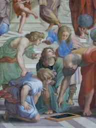 | Keywords: School of Athens Raphael detail 02.jpg Artwork Creator Raffaello Sanzio Scuola di Atene it The School of Athens L'École d'Athènes Euclid or Archimedes with students; on the right Zoroaster Ptolemy and Protogenes 1509 fresco Institution Stanza della Segnatura Palazzi Pontifici Vatican object history credit line accession number Marie-Lan Nguyen PD-old-100-1923 Details of The School of Athens Taken with Nikon D200 Taken with AF-S DX VR Zoom-Nikkor 18-200mm f/3 5-5 6G IF-ED | ||||