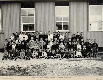 | Keywords: srnsw:series=5225 state records nsw staterecordsnsw archives nsw blackandwhite children schoolchildren daceyville students barefoot clothing monochrome black and white Title: School children, Dacey Garden suburb Dated: 06/09/1917 Digital ID: 5225_a018_a018000070 Rights: www.records.nsw.gov.au/about-us/rights-and-permissions We'd love to hear from you if you use our photos/documents. From a series of photographs of 'Dacey Garden Suburb' (Daceyville) - a development by the Housing Board of NSW as Sydney's "first planned modern garden suburb". Daceyville was developed between 1913 and 1918 and is located in south-eastern Sydney within the municipalities of Mascot and Botany. The images in the series show scenes of the area before development, road building, the types of houses built, shops, as well as the Public School. The suburb was named after the state parliamentarian John Rowland Dacey who played a vital role in the approval of this urban development. Many other photos in our collection are available to view and browse on our website using Photo Investigator. Title: School children, Dacey Garden suburb Dated: 06/09/1917 Digital ID: 5225_a018_a018000070 Rights: www.records.nsw.gov.au/about-us/rights-and-permissions We'd love to hear from you if you use our photos/documents. From a series of photographs of 'Dacey Garden Suburb' (Daceyville) - a development by the Housing Board of NSW as Sydney's "first planned modern garden suburb". Daceyville was developed between 1913 and 1918 and is located in south-eastern Sydney within the municipalities of Mascot and Botany. The images in the series show scenes of the area before development, road building, the types of houses built, shops, as well as the Public School. The suburb was named after the state parliamentarian John Rowland Dacey who played a vital role in the approval of this urban development. Many other photos in our collection are available to view and browse on our website using Photo Investigator. |