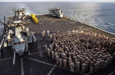 | Keywords: School Circle (9776185706).jpg Lt Col Kevin Collins commanding officer of Combat Logistics Battalion 26 26th Marine Expeditionary Unit gives his Marines a liberty brief on the flight deck of the USS San Antonio Sept 6 2013 The 26th MEU is a Marine Air-Ground Task Force forward deployed to the U S 5th and 6th Fleet areas of responsibility aboard the Kearsarge Amphibious Ready Group serving as a sea-based expeditionary crisis response force capable of conducting amphibious operations across the full range of military operations U S Marine Corps photo by Lance Cpl Juanenrique Owings/Released https //www flickr com/photos/marine_corps/9776185706/ School Circle 2013-09-04 01 07 https //www flickr com/people/40927340 N03 Marines from Arlington VA United States PD-USGov United States Marine Corps Official Page https //flickr com/photos/40927340 N03/9776185706 2016-09-03 22 14 53 United States Government Work Amphibious forces Helicopters |