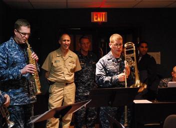 | Keywords: School of Music class 130319-N-ZK564-500.jpg en Vice Adm Scott Van Buskirk chief of naval personnel and Cmdr Ralph M Ingraham commanding officer of the School of Music observe improvisation techniques class led by instructor Musician 1st Class John Wylie on soprano saxophone School of Music is a learning site in the Center for Service Support Domain located aboard Joint Expeditionary Base Little Creek-Fort Story School of Music provides specialized musical training for designated personnel of the armed forces 2013-03-19 CSS https //www dvidshub net/image/891189 130319-N-ZK564-500 2013-03-20 18 31 VIRGINIA BEACH VA US PD-USGov-Military-Navy Joint Expeditionary Base Little Creek-Fort Story Images from DoD uploaded by Fæ |