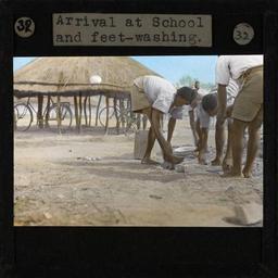 | Keywords: School Pupils Washing their Feet, Lubwa, Zambia, ca.1905-ca.1940 (imp-cswc-GB-237-CSWC47-LS6-032).jpg en <br> School Pupils Washing their Feet Lubwa Zambia ca 1905-ca 1940 Arrival at school and feet-washing Photograph of three school boys washing their feet on arrival at school They are washing their feet in small bowls placed on the ground In the background there is a low thatched hut with two bicycles visible inside ; This belongs to a series of Church of Scotland Foreign Missions Committee lantern slides relating to Lubwa mission Lubwa mission at Chinsali in north-eastern Zambia began as an outpost of the Free Church of Scotland mission in Malawi The first missionary expeditions to the Chinsali area were carried out by student teachers from the Overtoun Institute at Khondowe The Bemba are the largest ethnic group in northern Zambia and the first Free Church of Scotland establishment among the Bemba was a school at Lubwa opened in 1905 by the Malawian teacher David Kaunda and his wife Photographer Unknown Filename imp-cswc-GB-237-CSWC47-LS6-032 tif Coverage date 1905/1940 Part of collection International Mission Photography Archive ca 1860-ca 1960 Type images Part of subcollection Photographs from the Centre for the Study of World Christianity University of Edinburgh U K ca 1900-ca 1940s Repository name Centre for the Study of World Christianity Archival file impaunpub_Volume7/1592 url Repository address The University of Edinburgh School of Divinity New College Mound Place Edinburgh EH1 2LX United Kingdom Geographic subject country Zambia Format aacr2 1 lantern slide 8 x 8 cm Geographic subject continent Africa Rights Contact the repository for details Part of series Lubwa LS6 Repository email divinity-CSWC ed ac uk Subject lcsh Keyword Education; Foot washing Rite ; Transportation Date created 1905/1940 Publisher of the digital version University of Southern California Libraries Subject aat genre external views Format aat lantern slides Legacy record ID impa-m68694 Access conditions http //www ed ac uk/schools-departments/divinity/research/centres/world-christianity/collections-resources File GB 237 CSWC47/LS6/32 1905/1940 author http //digitallibrary usc edu/cdm/ref/collection/p15799coll123/id/64712 PD-old-70-1923 Magic lantern images Images from USC Digital Library uploaded by Fæ International Mission Photography Archive ca 1860-ca 1960 |
