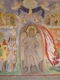 | Keywords: Schrarzental-2009-05-08-KapleSvatehoMichala-Interier.JPG en Černý Důl Trutnov District - the interior of the St Michaels Chapel; the fresco of the Last Judgenent has been made by Květa Krhánková in 2002 Petr Kysela has made the relief of archangel Michael cs Černý Důl okres Trutnov - interiér kaple svatého Michala; fresku Posledního soudu zhotovila v roce 2002 Květa Krhánková autorem reliéfu archanděla Michaela je Petr Kysela ru Че ны Дул айон Т утнов - инте ье часовни святого ихаила ф еску Ст ашного суда написала Квета К ганкова в 2002 году ельеф а хангела ихаила вы езал Пет Кисела it Černý Důl distretto di Trutnov - l'interno della capella di san Michele; affresco del Giudizio universale è fatto da Květa Krhánková in anno 2002 Petr Kysela è autore del rilievo dell'arcangelo Michele own Miloš Hlávka 2009-05-08 Interior of the chapel of Saint Michael Černý Důl 21st-century reliefs of Saint Michael |