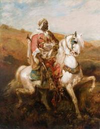 | Keywords: Schreyer, Adolf - Arabischer Reiter.jpg Artwork Creator Adolf Schreyer de Arabischer Reiter oil canvas cm 91 72 object history exhibition history credit line accession number La Gazette Drouot http //catalogue gazette-drouot com/ref/lot-ventes-aux-encheres jsp id 447101 Adolf SCHREYER 1828-1899 PD-old-auto 1899 Adolf Schreyer Paintings of men on horseback |