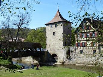 Keywords: schwäbisch hall hall old town middle ages city historically truss fachwerkhaus river tower bridge city view romantic town on the river southern germany