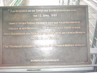 Keywords: Schweb02012006-020.JPG 2005-12-30 own assumed Stefan17675~commonswiki low quality Gedenktafel an das Schwebebahnunglück vom 12 April 1999 2005 photographs of Wuppertal