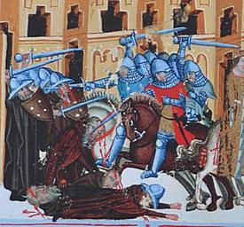 Keywords: Schweinfurt kloster.jpg cs Vojáci Dalimil chronik author century 14 PD-Art Chronik Dalimil