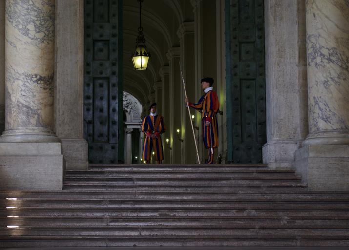 Keywords: Schweizergarde 001.JPG de Schweizergardisten halten Wache vor dem Bronzetor own Janericloebe 2009-05 Bronze door of the Apostolic Palace People of the Swiss Guards