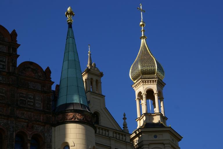 Keywords: schwerin castle domes germany turrets architecture palace building landmark historic attraction tower sightseeing parliament famous touristic romantic exterior golden mecklenburg-vorpommern