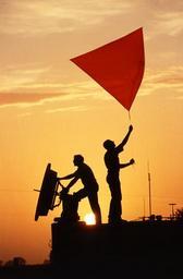Keywords: scientists silhouettes sunset radar dish tracking insects science research equipment biology study learn teamwork