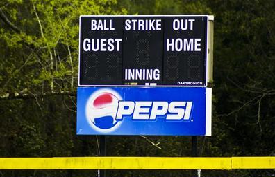 Keywords: score sports baseball ads pepsi logo drink soft drink score board