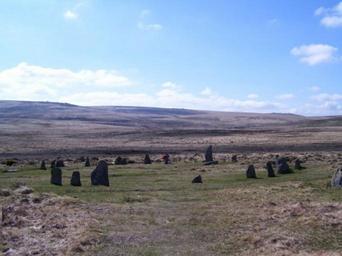 Keywords: Scorhill.jpg en Scorhill Stone Circle Dartmoor Devon U K Features me petting my dog Bella own Paul Bedson 2011-02-28 Cc-zero Scorhill Stone Circle