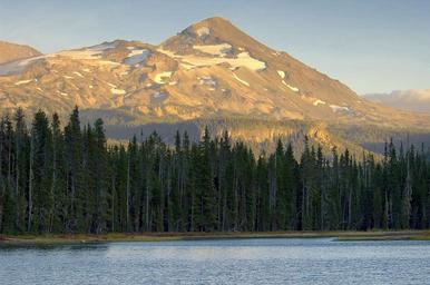 Keywords: scott lake mountains sisters calm landscape scenic park range peaceful water forest trees picturesque willamette national forest oregon usa snow peaks