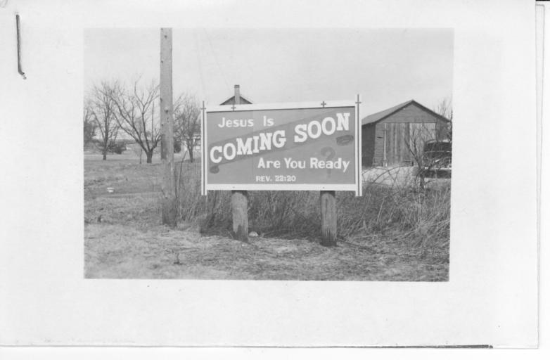 | Keywords: scottdale road sign roadsign mennonite community mennonite church pennsylvania service mennonitecommunitymennonitechurchpennsylvaniaservice blackandwhite monochrome text outdoor black and white Caption: 1950. Scottdale, Pennsylvania. Religious Roadside Sign sponsored by Mennonite Publishing House and Mennonite Youth Fellowship. Citation: Mennonite Community Photographs, 1947-1953: Service. HM4-134 Box 1 Photo 021.2-26. Mennonite Church USA Archives - Goshen. Goshen, Indiana. Caption: 1950. Scottdale, Pennsylvania. Religious Roadside Sign sponsored by Mennonite Publishing House and Mennonite Youth Fellowship. Citation: Mennonite Community Photographs, 1947-1953: Service. HM4-134 Box 1 Photo 021.2-26. Mennonite Church USA Archives - Goshen. Goshen, Indiana. |