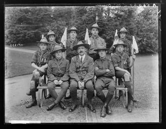 | Keywords: scouts mccrum proni allison allison & co. photographers allisoncophotographers group portrait groupportrait genealogy ancestry ulster armagh northern ireland northernireland blackandwhite people monochrome photo border team sport sport black and white Creator: H. Allison & Co. Photographers Date: 15th October 1917 Original Format: Glass Plate Negative Description: Group of scouts with Scout Leader. Commissioned by McCrum. PRONI Ref: D2886/W/Portrait/96 Copying and copyright: Please see www.proni.gov.uk/index/research_and_records_held/copying_... For Copy Orders, contact: Email: proni@dcalni.gov.uk For fees and charges see: www.proni.gov.uk/index/about_proni/are_there_any_fees_and... Creator: H. Allison & Co. Photographers Date: 15th October 1917 Original Format: Glass Plate Negative Description: Group of scouts with Scout Leader. Commissioned by McCrum. PRONI Ref: D2886/W/Portrait/96 Copying and copyright: Please see www.proni.gov.uk/index/research_and_records_held/copying_... For Copy Orders, contact: Email: proni@dcalni.gov.uk For fees and charges see: www.proni.gov.uk/index/about_proni/are_there_any_fees_and... |