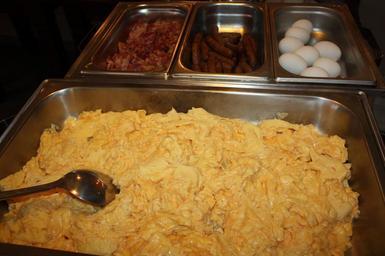 Keywords: scrambled eggs egg bacon sausage food eat delicious breakfast frisch restaurant gastronomy breakfast buffet buffet