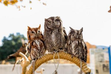 | Keywords: birds animals wildlife outdoor These three screech owls (Eastern screech owl on the left, the two on the right are Western screech owls) are rehab birds due to trauma to their eyes. Photo taken at Bird Fest on December 5, 2015. These three screech owls (Eastern screech owl on the left, the two on the right are Western screech owls) are rehab birds due to trauma to their eyes. Photo taken at Bird Fest on December 5, 2015. | ||||