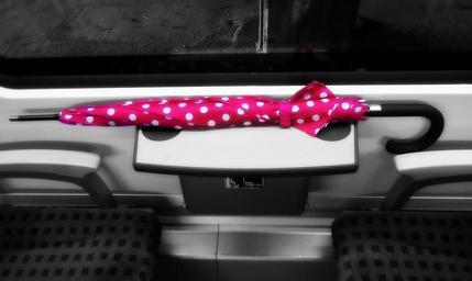 Keywords: screen zugfahrt train compartment travel umbrella rain emotion alone polka dots loss lost