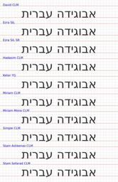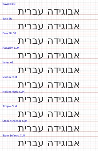Keywords: ScriptSample Hebrew.svg en Hebrew fonts supported by Wikimedia except DejaVu 2016-05-07 own Locoluis other versions cc-zero SVG files Fonts Writing systems