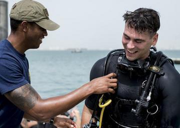 | Keywords: Scuba Supervisor Course April 2015 150429-N-QA919-106.jpg en 150429-N-QA919-106 NAVAL SUPPORT ACTIVITY Bahrain April 29 2015 - Navy Diver 2nd Class Aaron Jones and Navy Diver 2nd Class Peter O'Brien both assigned to Mobile Diving and Salvage Unit One Unit 11 participate in a SCUBA supervisor course The course is intended to train and qualify divers in supervisory roles U S Navy photo by Mass Communication Specialist 3rd Class Tyler N Thompson/ Released 2015-04-29 Petty Officer 3rd Class Tyler Thompson https //www dvidshub net/image/1925727 150429-N-QA919-106 2015-05-11 09 51 NAVAL SUPPORT ACTIVITY BAHRAIN BH 3 PD-USGov-Military-Navy Naval Support Activity Bahrain Mobile Diving and Salvage Unit 1 Images from DoD uploaded by Fæ |
