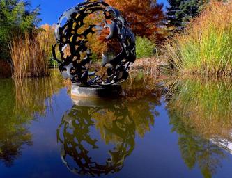 Keywords: sculpture about pond mirroring botany freiburg autumn