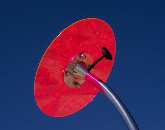 Keywords: sculpture art pink chrome contemporary modern exhibition blue sky bright