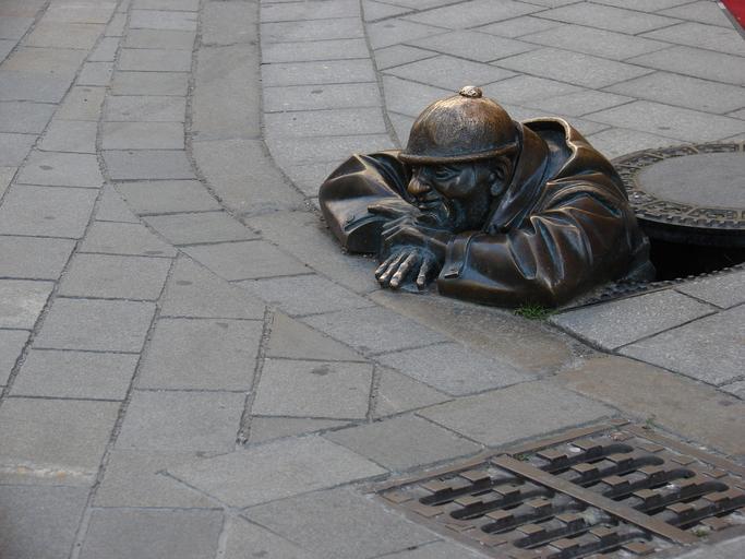Keywords: sculpture bronze sculpture ausschau funny man human czech republic bratislava rest break
