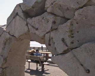 Keywords: sculpture elderly couple des moines wa boardwalk seniors arch beach front park bench relaxing together
