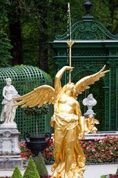 Keywords: sculpture gold gilded woman angel golden fig fountain water trombone park linderhof palace bavaria king ludwig