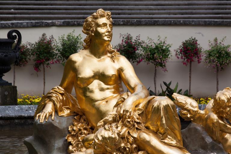 Keywords: sculpture gold gilded woman angel golden fig naiad fertility goddess nymph linderhof palace bavaria king ludwig