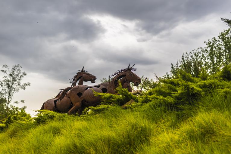Keywords: sculpture horses garden gardens lleida iron horses metal