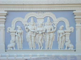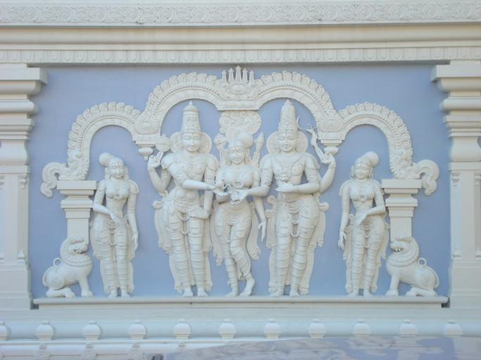 Keywords: sculptures temple spiritual religion hindu goddess gods white facade wall