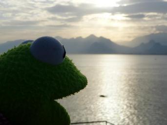 Keywords: sea abendstimmung afterglow horizon mountains sunset clouds sky mediterranean frog kermit green