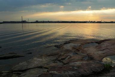 Keywords: sea bay rocks sunset sky cloud water clouds urban silhouette factories chimneys