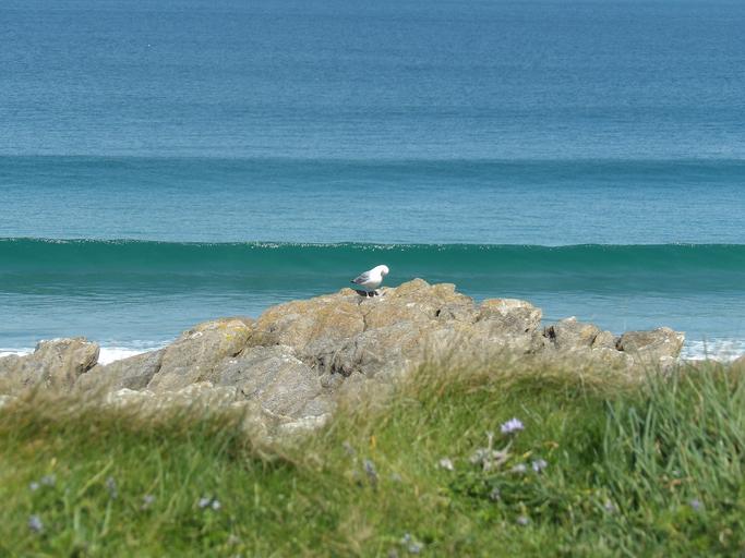 Keywords: sea beach trail hiking landscape horizon brittany ocean summer france side coastline coastal path seaside nature rock seagull