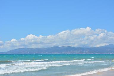 Keywords: sea beach water summer sun blue turquoise clouds mallorca spain wave island day hell sunshine mountains