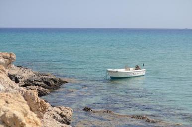 Keywords: sea boat clear water holidays small boat rock rocks beach horizon 80mm f2 nikon calm sea sky water